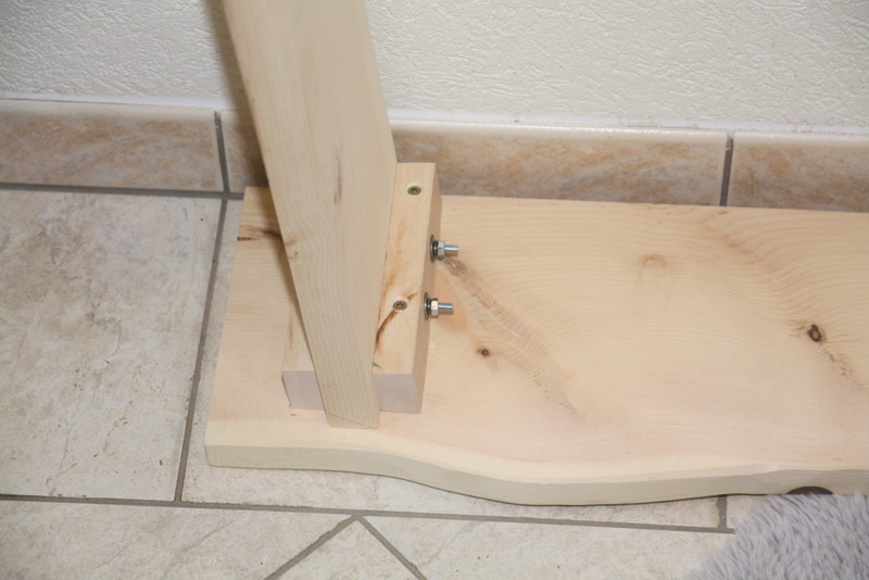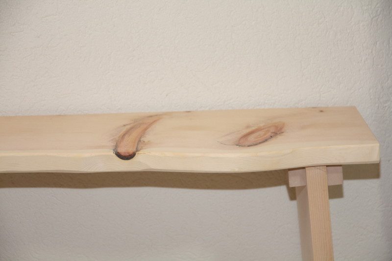 Die Bank ist ein handgefertigtes Unikat, das Holz ist naturbelassen.