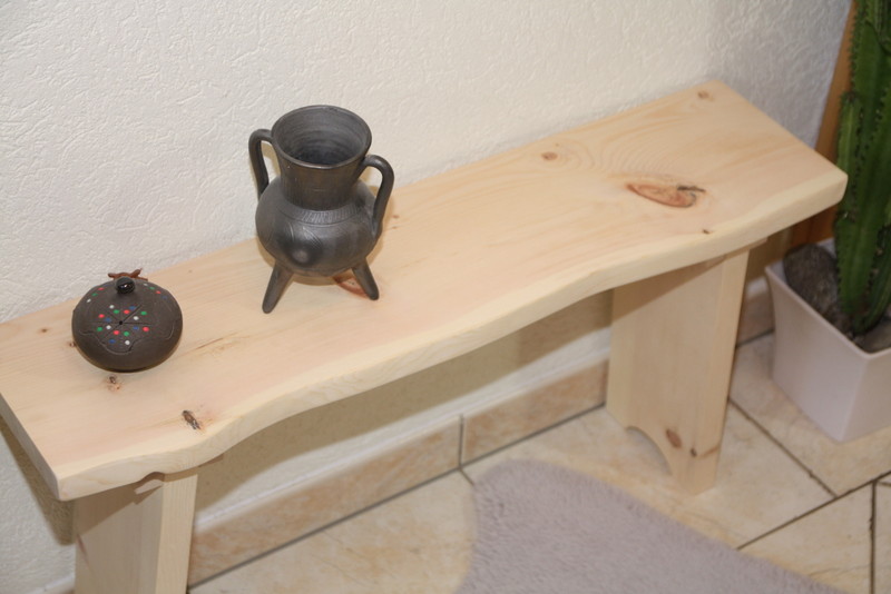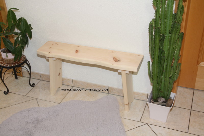 Die Bank ist ein handgefertigtes Unikat, das Holz ist naturbelassen.